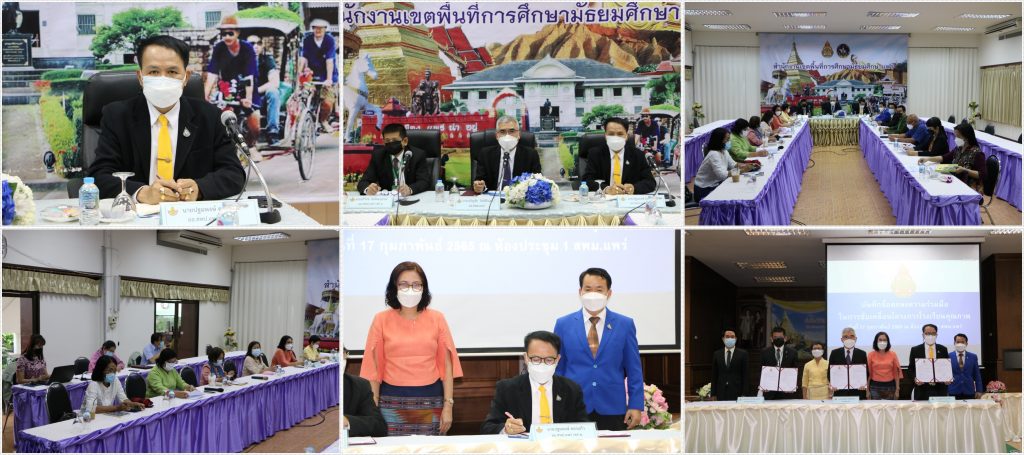 วันที่ 17 กุมภาพันธ์ 2565 ดร.ปฐมพงษ์ ดอกแก้ว ผอ.สพป.แพร่ เขต 2 พร้อมด้วย นายนิรันดร์ แก้วฝ่าย รอง ผอ.สพป.แพร่ เขต 2, ผอ.กลุ่มนโยบายและแผน, ผอ.กลุ่มนิเทศ ติดตามและประเมินผลการจัดการศึกษา และ ผอ.กลุ่มส่งเสริมการจัดการศึกษา เข้าร่วมประชุมวางแผนขับเคลื่อนนโยบายโรงเรียนคุณภาพ และลงนามบันทึกข้อตกลงความร่วมมือ (MOU) ขับเคลื่อนโรงเรียนคุณภาพ ณ ห้องประชุม สพม.แพร่