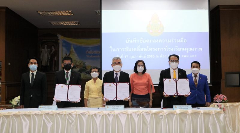 วันที่ 17 กุมภาพันธ์ 2565 ดร.ปฐมพงษ์ ดอกแก้ว ผอ.สพป.แพร่ เขต 2 พร้อมด้วย นายนิรันดร์ แก้วฝ่าย รอง ผอ.สพป.แพร่ เขต 2, ผอ.กลุ่มนโยบายและแผน, ผอ.กลุ่มนิเทศ ติดตามและประเมินผลการจัดการศึกษา และ ผอ.กลุ่มส่งเสริมการจัดการศึกษา เข้าร่วมประชุมวางแผนขับเคลื่อนนโยบายโรงเรียนคุณภาพ และลงนามบันทึกข้อตกลงความร่วมมือ (MOU) ขับเคลื่อนโรงเรียนคุณภาพ ณ ห้องประชุม สพม.แพร่