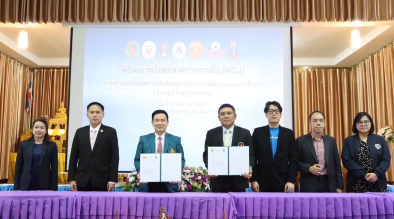 วันที่ 23 กันยายน 2568 ดร.ธนะณัช อินทา ผอ.สพป.แพร่ เขต 2 พร้อมด้วยนางพิมพ์ณัฐชยา กวาวสิบสอง และนายวาที สมศรี รอง ผอ.สพป.แพร่ เขต 2 ร่วมลงนามข้อตกลงความร่วมมือ(MOU) การสร้างเครือข่ายร่วมมือพหุภาคีเพื่อการพัฒนาคุณภาพการศึกษา 1 อำเภอ 1 โรงเรียนคุณภาพ ร่วมกับคณะครุศาสตร์ มหาวิทยาลัยราชภัฏอุตรดิตถ์ โดย ผศ.ดร.เชาวฤทธิ์ จั่นจีน คณบดีคณะครุศาสตร์ มหาวิทยาลัยราชภัฏอุตรดิตถ์ ณ หอประชุมโรงเรียนอนุบาลจรูญลองรัตนาคาร อำเภอลอง