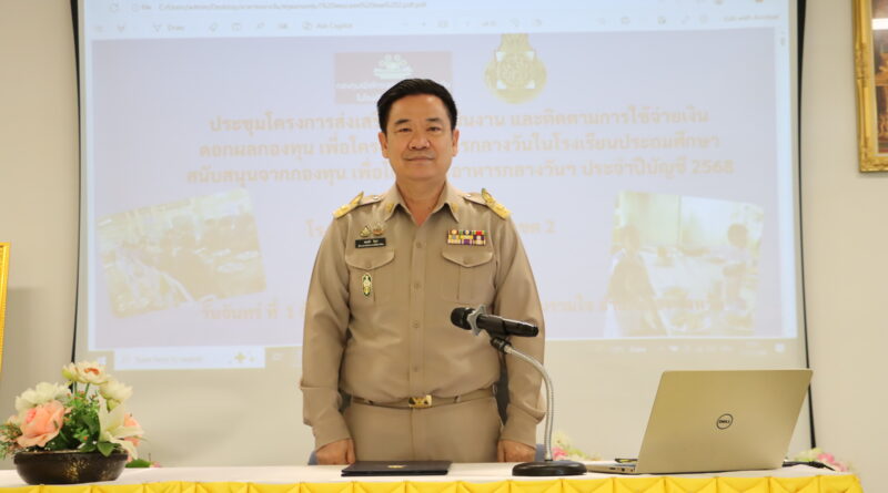 ประชุมโครงการส่งเสริมการดำเนินงานและติดตามการใช้จ่ายเงินดอกผลกองทุนเพื่อโครงการอาหารกลางวันในโรงเรียนประถมศึกษา