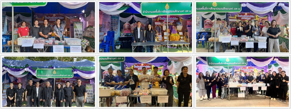 วันที่ 7-8 ธันวาคม 2568 ดร.ธนะณัช อินทา ผอ.สพป.แพร่ เขต 2 มอบหมายให้ข้าราชการครูและบุคลากรทางการศึกษา ในสังกัด เยี่ยมชมและให้กำลังใจผู้บริหารสถานศึกษา คณะครู และนักเรียน โรงเรียนชุมชนบ้านบวกโป่ง(พรหมราษฎร์อุปถัมภ์) จัดบูธนิทรรศการงานอาชีพนักเรียน (แต่งหน้าคัพเค้กวานิลา บานอฟฟี่กล้วยหอม บราวนี่โกโก้ กล้วยฉาบ) ในงานกาชาดและของดีจังหวัดแพร่ ประจำปี 2568 ณ สนามกีฬาองค์การบริหารส่วนจังหวัดแพร่