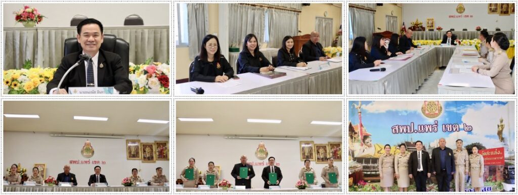 วันที่ 18 ธันวาคม 2568 ดร.ธนะณัช อินทา ผอ.สพป.แพร่ เขต 2 พร้อมด้วย ดร.วิริยะ วรายุ รอง ผอ.สพป.แพร่ เขต 2 และเจ้าหน้าที่กลุ่มบริหารงานบุคคล รับรายงานตัว ปฐมนิเทศและจัดทำบันทึกข้อตกลง (MOU)ในการปฏิบัติงานในหน้าที่ตำแหน่งผู้บริหารสถานศึกษา สังกัด สพป.แพร่ เขต 2 จำนวน 4 ราย ณ ห้องประชุมลานรวมใจ สพป.แพร่ เขต 2 อำเภอลอง