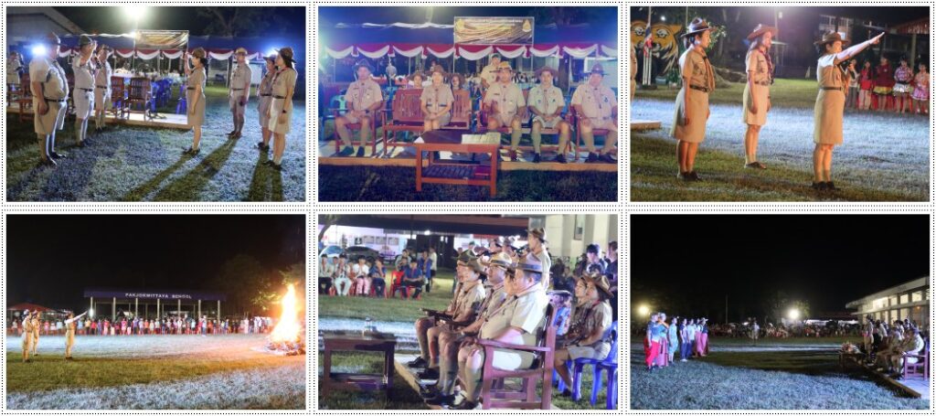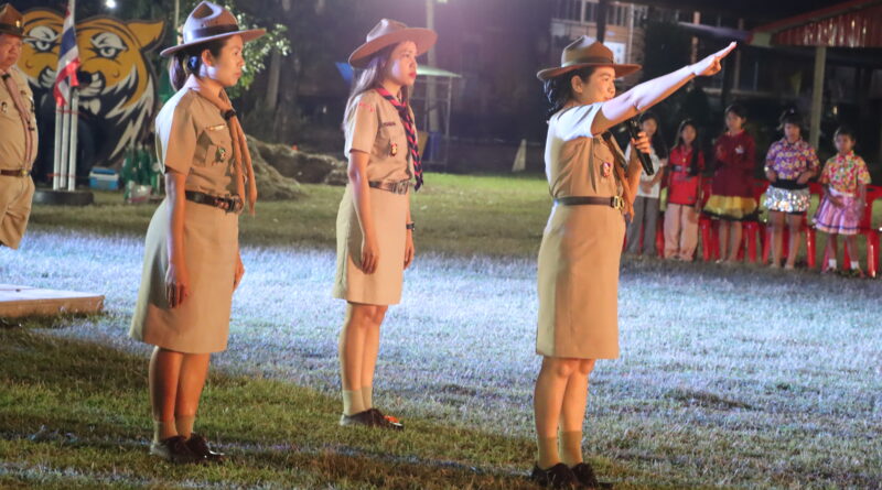 พิธีรอบกองไฟ การเข้าค่ายพักแรมลูกเสือ-เนตรนารี กลุ่มโรงเรียนทุ่งทองนที