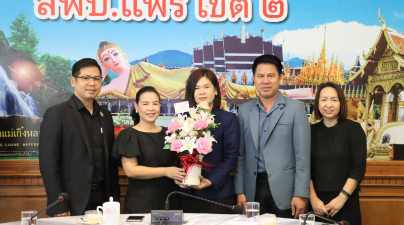 วันที่ 20 กุมภาพันธ์ 2569 นางสาวอ้อนจันทร์ คำเพราะ ผอ.สพป.แพร่ เขต 2 พร้อมด้วยนายมนัส วงค์ศรีชา รอง ผอ.สพป.แพร่ เขต 2 พร้อมด้วยผู้อำนวยการกลุ่ม/หน่วย และบุคลากรเจ้าหน้าที่ สพป.แพร่ เขต 2 ร่วมต้อนรับคณะศึกษาดูงานจาก สพม.ตาก และมอบช่อดอกไม้แสดงความยินดี นางศตพร ลีลารัศมีวงศ์ ในโอกาสย้ายมาดำรงตำแหน่งนักจิตวิทยาโรงเรียน ประจำสำนักงานเขตพื้นที่ กลุ่มส่งเสริมการจัดการศึกษา สพป.แพร่ เขต 2 ณ ห้องประชุมใบลาน สพป.แพร่ เขต 2