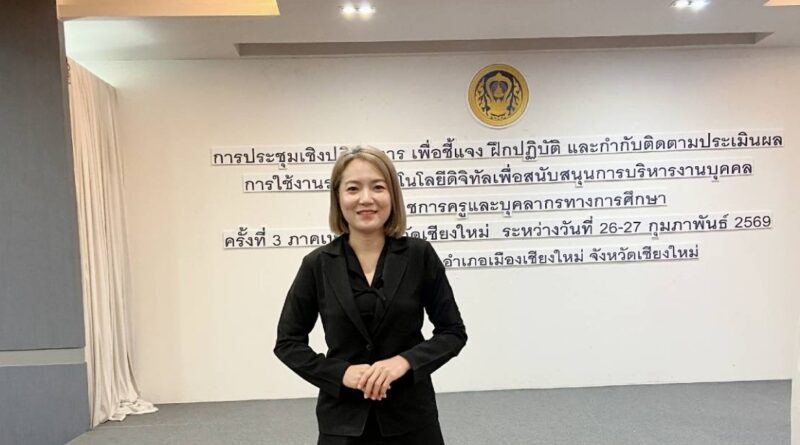 นางสาวกมลฉัตร อินต๊ะเม้า นักทรัพยากรบุคคลชำนาญการ เข้าร่วมประชุมเชิงปฏิบัติการ เพื่อชี้แจง ฝึกปฏิบัติ และกำกับติดตามประเมินผลการใช้งานระบบเทคโนโลยีดิจิทัลเพื่อสนับสนุนการบริหารงานบุคคลของข้าราชการครูและบุคลากรทางการศึกษา ระหว่างวันที่ 26-27 กุมภาพันธ์ 2569 ณ โรงแรมคุ้มภูคำ จังหวัดเชียงใหม่