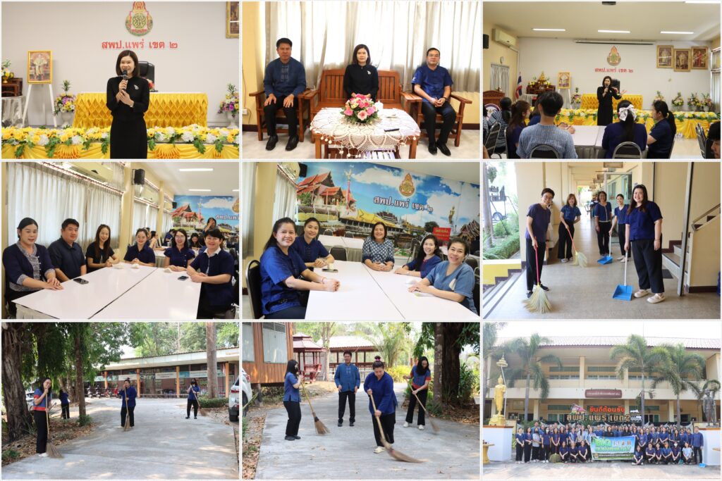 วันที่ 20 เมษายน 2569 เวลา 09.00 น. นางสาวอ้อนจันทร์ คำเพราะ ผอ.สพป.แพร่ เขต 2 พร้อมด้วย นายมนัส วงค์ศรีชา และนายเชษฐา วันสุทะ รอง ผอ.สพป.แพร่ เขต 2 นำคณะข้าราชการครูและบุคลากรทางการศึกษา จัดกิจกรรมพัฒนาสำนักงานเขตพื้นที่การศึกษา “Big Cleaning Day สถานที่ทำงานน่าอยู่ น่าทำงาน” เพื่อปรับปรุงภูมิทัศน์ให้เป็นระเบียบเรียบร้อย สะอาด ปลอดภัย น่าอยู่ น่าทำงาน ณ สำนักงานเขตพื้นที่การศึกษาประถมศึกษาแพร่ เขต 2 อำเภอลอง