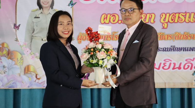 มอบช่อดอกไม้แสดงความยินดีกับ ผอ.มัตยา บุตรแก้ว ในโอกาสที่มารับตำแหน่ง ผอ.โรงเรียนวัดตอนิมิตร